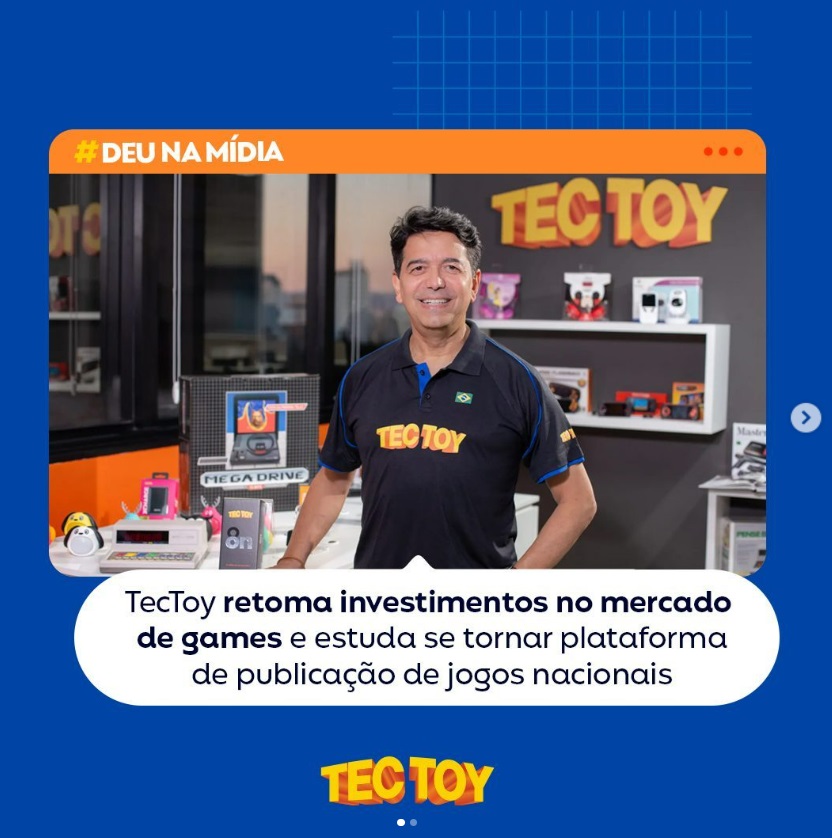 “A TecToy retoma investimentos no mercado de games e estuda se tornar plataforma de publicação de jogos nacionais”, informa o texto da publicação no Insta da fabricante de brinquedos.