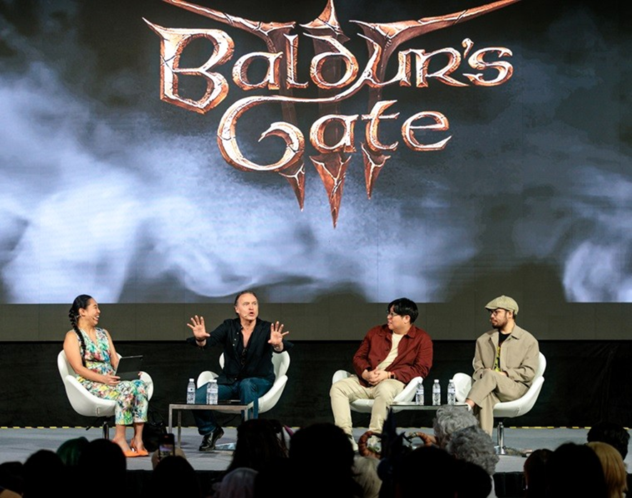 Além dessa muito disputada partida de eSports, Andrew Wincott, o dublador por trás de Raphael em Baldur’s Gate 3 se juntou à artista sênior Wayne Chu, Wisnu Irawan (cinema) e Tomoko Choo que é a chefe de Estúdio da Larian Studios, no palco para uma discussão envolvente sobre a arte por trás do design de personagens do jogo e no estilo cinematográfico adotado no sucesso Baldurs Gate 3.