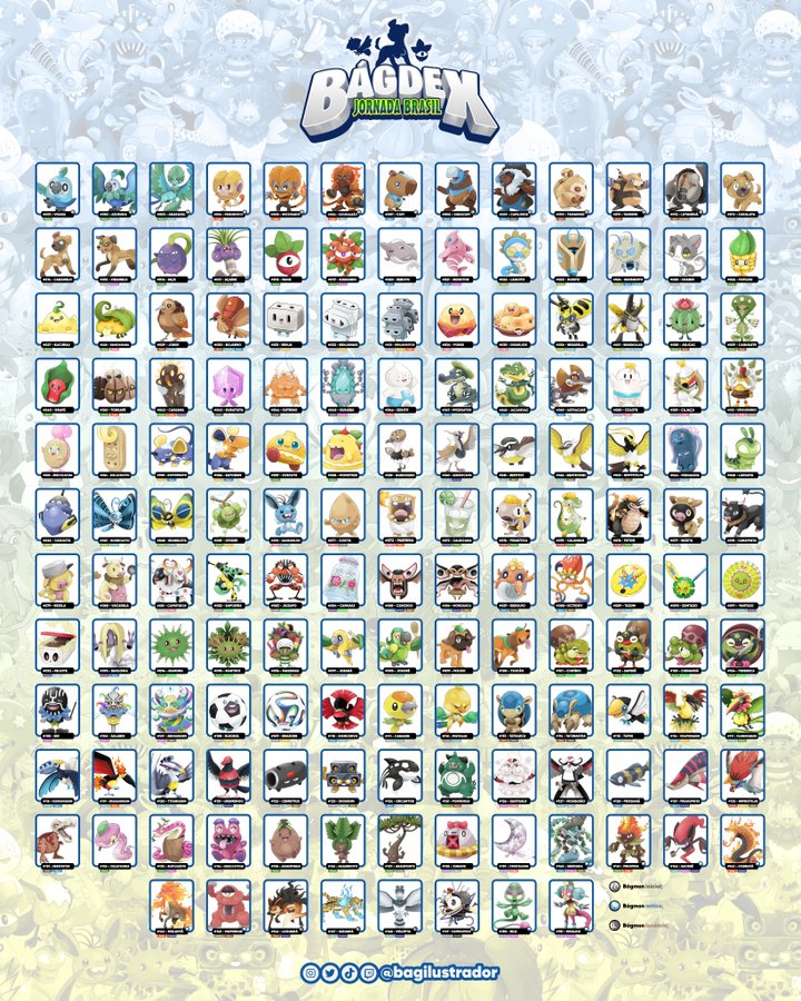 No vídeo abaixo, que já conta com mais de 100 mil visualizações, são exibidos os designs originais de todos os 151 bagmons dentro de BagDex.