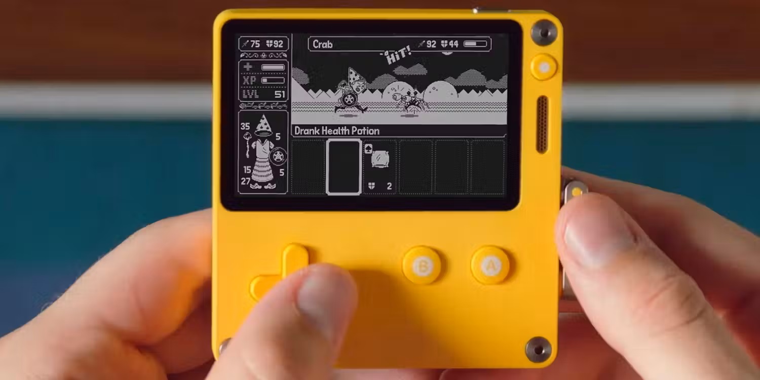 Para a sua proposta de enlace, o profissional a criou um jogo de arcade com gráficos em pixel arte, intitulado “Love Letter”, em uma estrutura de mini-console denominada Playdate.