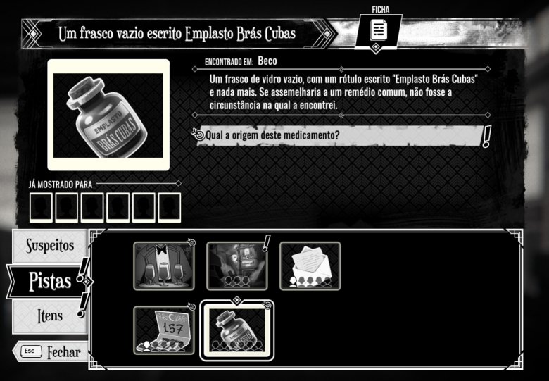 Também gostei muito do sistema de inventário e da manipulação dos objetos, mesmo que algumas pistas acabem sendo bem óbvias (mas afinal, isso é normal neste tipo de narrativa).