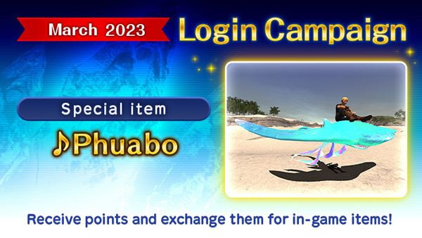 -Campanha de Login – A campanha de login de março de 2023 será executada a partir de sábado, 11 de março de 2023, às 7:00 a.m. (PST) / 9:00 a.m. (CST), até domingo, 9 de abril de 2023, às 7:00 a.m. (PDT) / 9:00 a.m. (CST). Receba pontos que podem ser trocados por itens no jogo, como “♪Phuabo”.