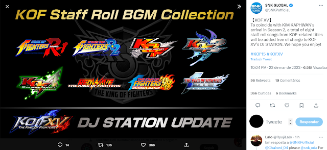 A SNK anunciou que com a chegada de Kim a The King of Fighters 15, haverá uma atualização no DJ Station do jogo e a adição de oito novas músicas de títulos anteriores, incluindo King of Fighters R-1, Maximum Impact 1, 2 e 4, Neowave, ’98 Ultimate Match e 2002 Unlimited Match.