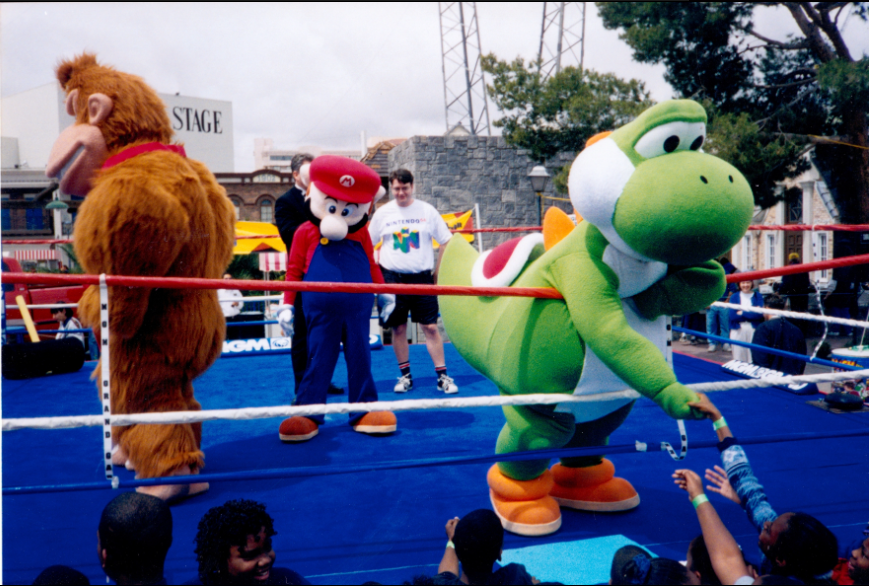 O evento Slamfest ’99 apresentava personagens como Mario, Donkey Kong, Yoshi e Pikachu em versões de luta livre com atores vestindo fantasias dos personagens clássicos da Nintendo.