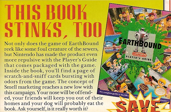 Outro problema é o menu de ação. Fazendo um mau uso dos botões do SNES, ao tentar interagir com uma pessoa ou objeto, você é redirecionado a um menu com seis opções, que pode ser irritante para quem ainda não está acostumado com os comandos do jogo. Este problema foi resolvido em seu sucessor, Mother 3.
