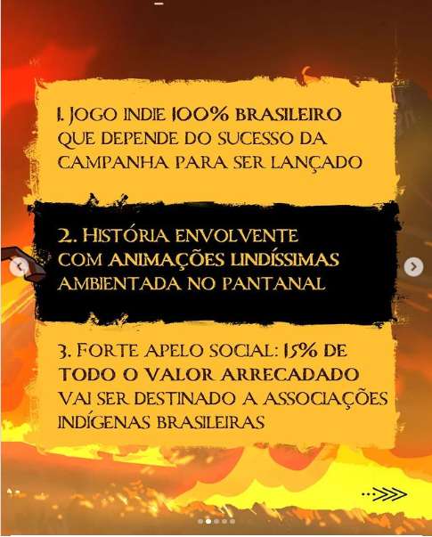 Para quelha não sabe, um projeto crowdifunding, também afamado como achega coletivo, visa arrecadar uma certa quantia de dinheiro para o próprio, atravessadamente de determinada campanha online. E, neste caso, ao ajudar o projeto você poderio ganhar brindes que envolvem o jogo e 15% de todo o valor apurado será determinado a associações indígenas brasileiras.