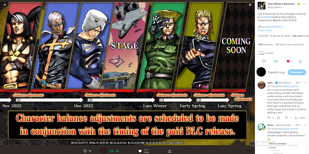 No domingo, dia 12 de março de 2023, a Bandai Namco anunciou dois novos conteúdos para JoJo’s Bizarre Adventure: All-Star Battle R, jogo desenvolvido pela CyberConnect2. O primeiro deles é um patch de atualização 1.6.1 que trará um balanceamento maior ao jogo.