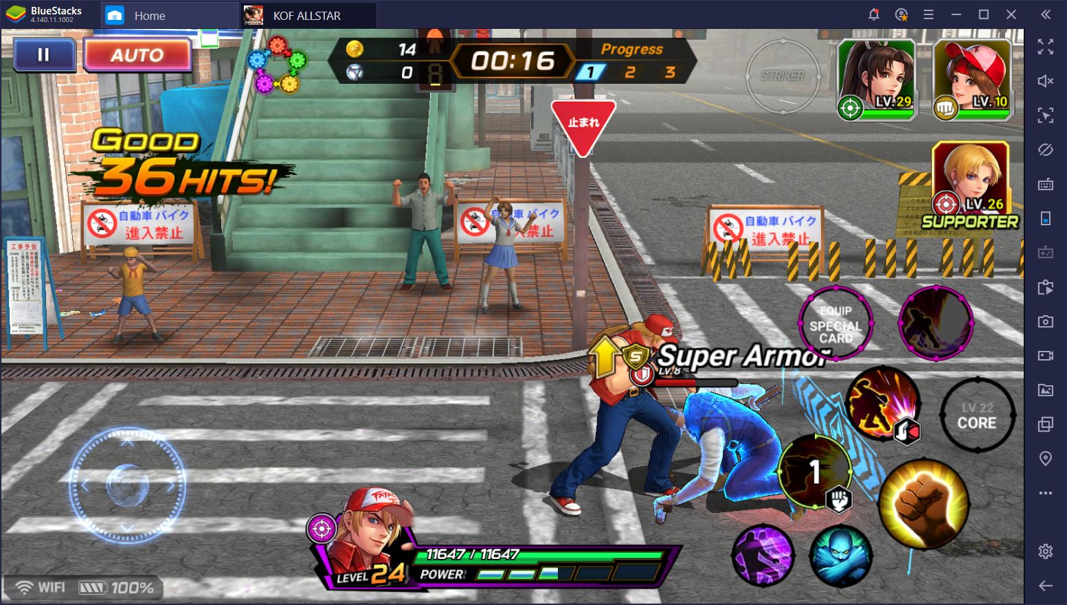Descrição: The King of Fighters All Stars (Kof All Stars) e mais um jogo da franquia da SNK que chegou para mobile. Mas diferente dos jogos da franquia principal, este é um Beat-em-Up (Bata em todos) onde você luta para poder invocar os personagens desde o Kof 93 até os exclusivos deste game. O jogo conta também com um sistema de cartas que podem dar vantagens incríveis durante as missões. O jogo possui ainda modos multiplayer Versus que são liberados a partir do nível 10.