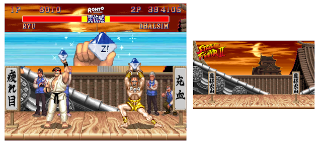 O material é ambientado na Suzaku Castle, clássico cenário de Street Fighter II. Ryu e Dhalsim aparecem utilizando o Rohto Z!, um relaxante colírio capaz de aliviar qualquer tipo de desconforto ocular.