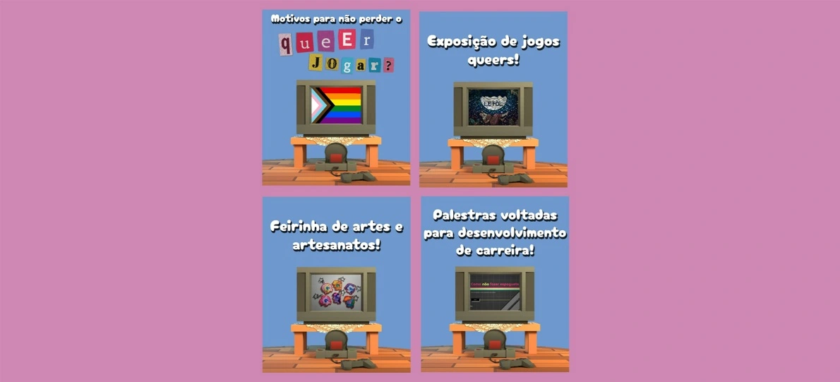 No evento de jogos LGBTQIAPN+, além da exposição dos jogos, o público presente poderá acompanhar palestras técnicas sobre game design relacionado à cultura da Diversidade e encontrar os jogos e produtos do time de profissionais e artistas Queer.
