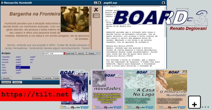 “Primeira atualização do livro digital interativo Board-3, para você aprender sobre narrativas interativas e adventures”, escreveu o designer, em postagens nas redes sociais, esta semana.