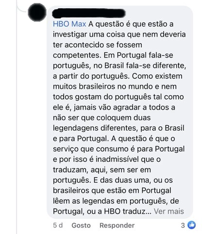 Em seu perfil do Twitter, um usuário chamado Renato Bacon compilou alguns comentários deixados pelo público português nas redes sociais do HBO Max, muitos deles reclamando da “vergonha” que é assistir a série com legendas em português brasileiro.