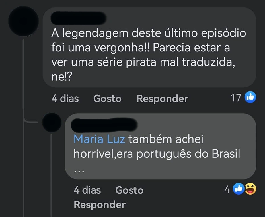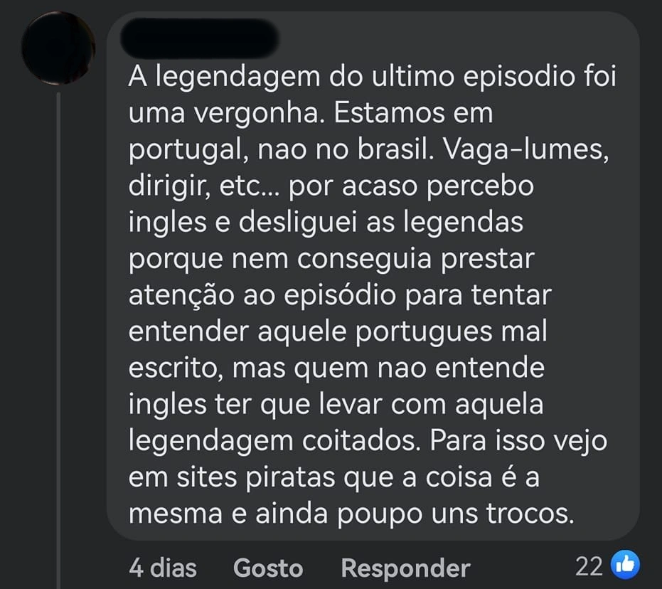 No entanto, no país europeu, a série só pode ser assistida com legendas em português brasileiro, o que tem gerado algumas reações bem fortes por parte dos nossos irmãos lusitanos.
