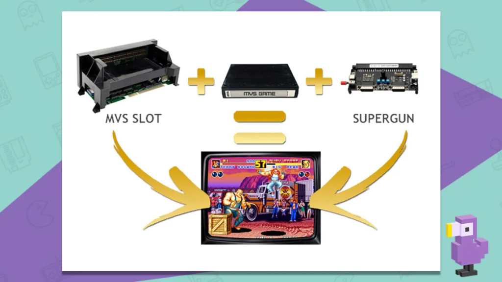 Ele oferece uma maneira legal de pegar esses jogos de arcade NeoGeo e slots MVS e transformá-los em um console de jogos portátil que pode ser jogado diretamente na televisão.